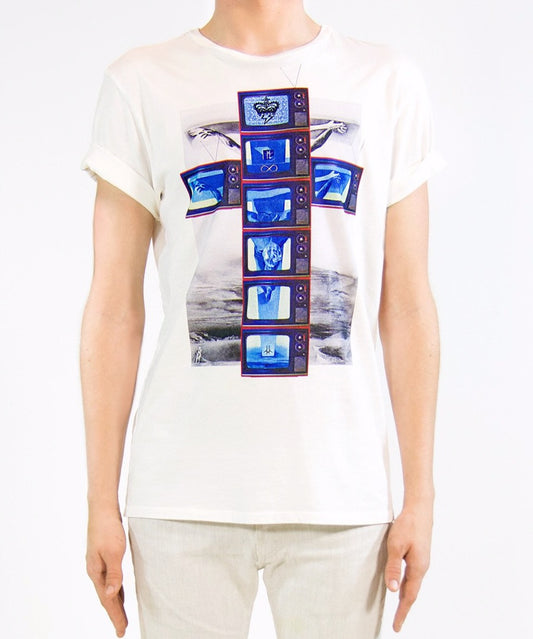 Modern Crucifixion Technicolor TV T-Shirt | White ( LE )