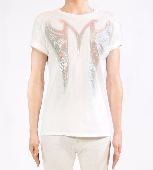 Angel Feather Skull X T-Shirt | White